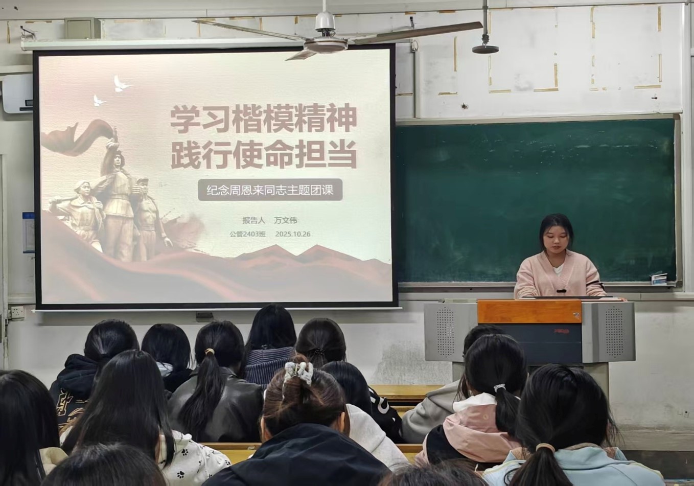 公管院10月27日电(记者 万文伟)为深切缅怀周恩来同志的丰功伟绩,引导广大团员青年传承红色基因、砥砺强国之志,公管院2403班隆重举办了“学习楷模精神 践行使命担当”主题团课,全体成员参加,活动取得圆满成功。
