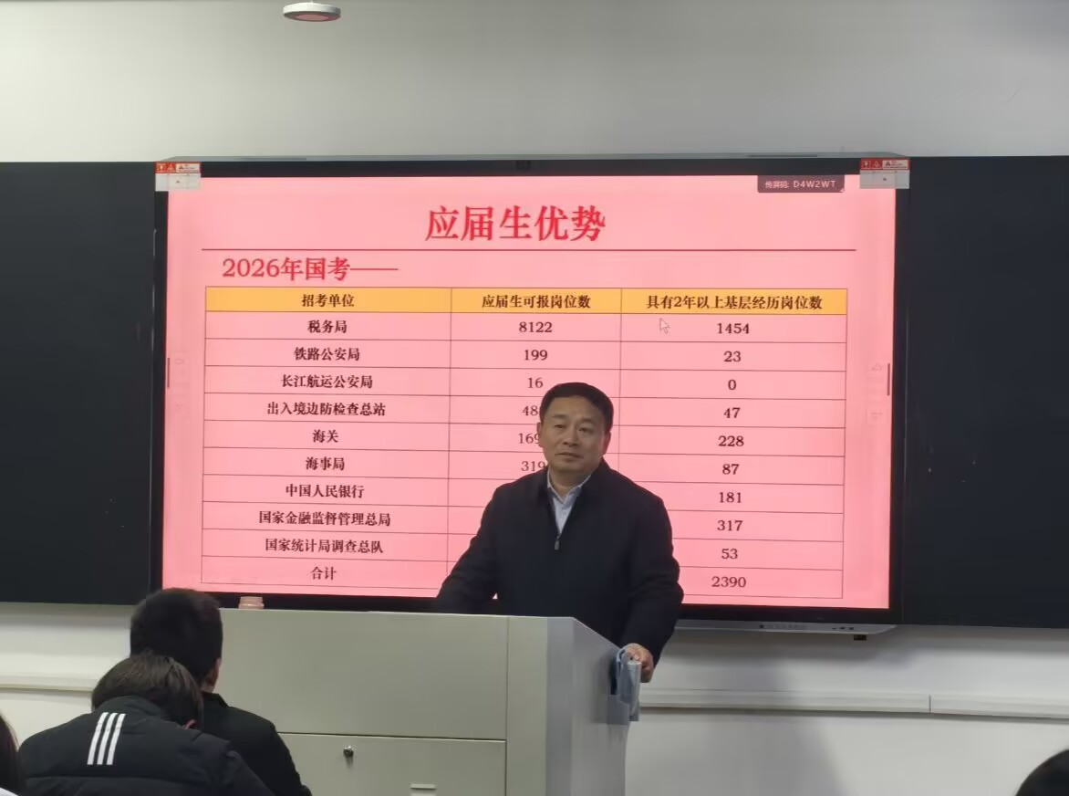 冯永恒结合近三年公务员招录的整体趋势与考情变化,深度解读2026年公务员招考政策的调整方向与核心要点,针对学历门槛、专业要求、基层服务年限等关键条款进行逐条剖析,帮助同学们精准把握政策红利与报考限制。他聚焦招考职位特点,结合自身考公培训经验,拆解综合管理岗、行政执法岗等不同岗位的报考优势与竞争态势,让同学们对各类岗位的适配性有了更清晰的认知。最后,他以历年高分学员的真实案例作比,强调选岗策略与分阶段备考规划的重要性,鼓励同学们结合自身专业背景、学习节奏制定个性化计划,为后续备考之路提供清晰且可落地的指引。