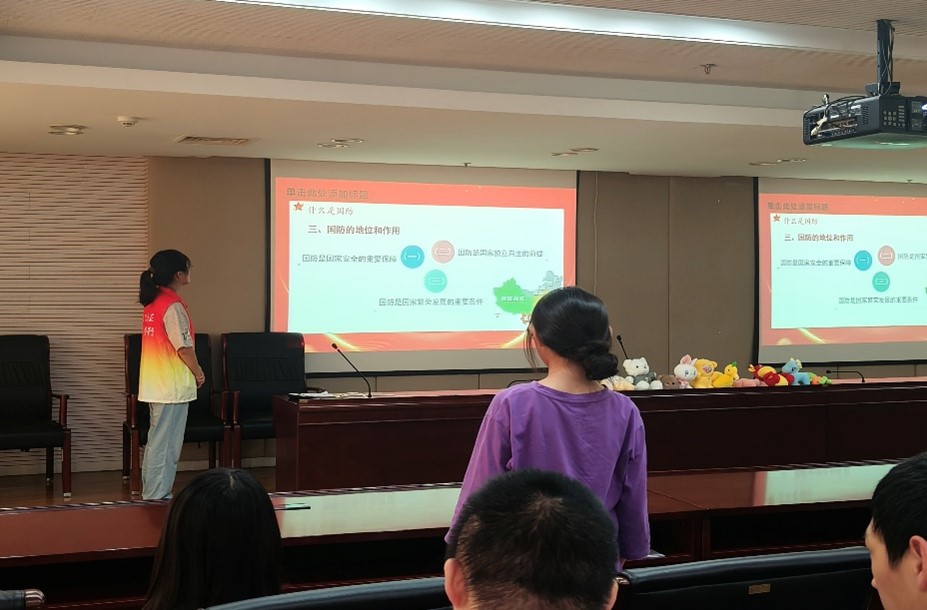 公管院9月21日电(记者 朱莉雅)为厚植青少年家国情怀,筑牢强国强军的青春根基,9月21日,公共管理学院社会实践部组织志愿者前往淮安市社会福利院开展“心怀国防梦,争做好少年”国防教育活动,以知识宣讲、互动问答与趣味游戏为载体,将国防意识的种子播撒进孩子们的心田,助力他们成长为有担当、有情怀的新时代强国少年。